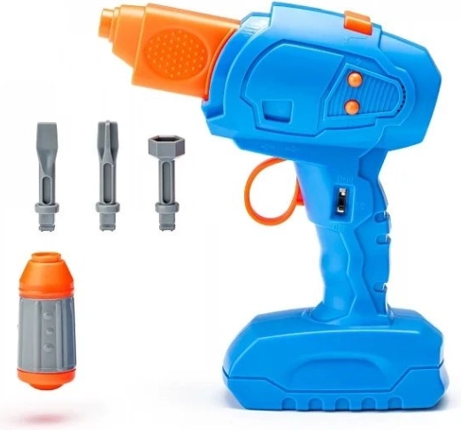 A csomag része egy gyerek fúrógép cserélhető fejekkel, amely hűen utánozza a valódi szerszámot, ugyanakkor biztonságos a kis kezek számára. A könnyű és masszív, minőségi műanyagból készült kialakítás alkalmas a mindennapos játékra otthon és utazás közben is.