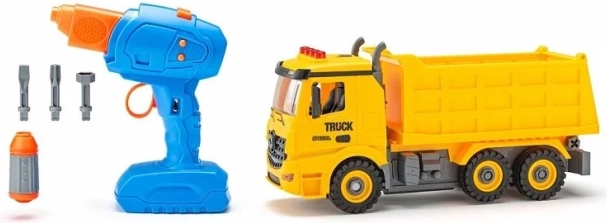 A szett tartalmazza a jármű műanyag elemeit és a kerekeket saját összeszereléshez. A gyerekek összeállítják a járművet, és már indulhatnak is az építkezésre.