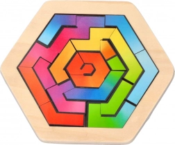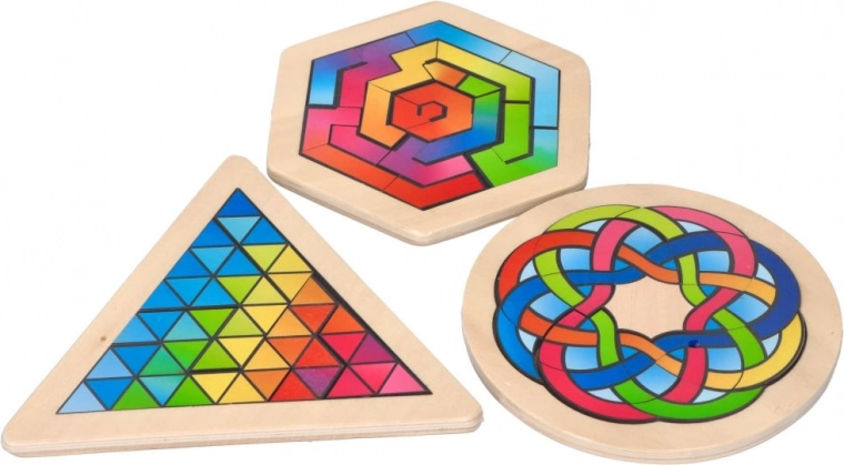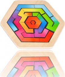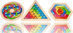 Kreatív mozaikos kirakó kör alakú fa keretben, amely örömet szerez a kisebb és nagyobb építőknek egyaránt. A 16 színes elemből készíthettek egyedi mintákat sablon alapján vagy fantáziából. Fejleszti a finommotorikát, a türelmet és a színfelismerést, vízbázisú festékkel kezelt fából készült, és keretben vagy azon kívül is kirakható.