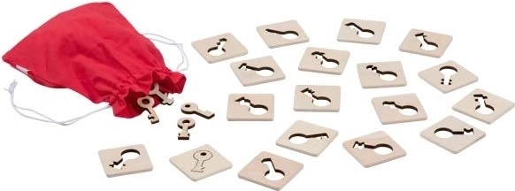 A Tapintós memória – Kulcsok egy eredeti megfigyelő és szenzoros játék, amely támogatja a koncentrációt, a kéz–szem koordinációt és az apró különbségek felismerését. A játékosok a zsákból kulcsokat húznak, és igyekeznek a lehető leggyorsabban megtalálni a megfelelő sablont a fa lapkán – a helyes választás pontot ér.