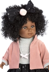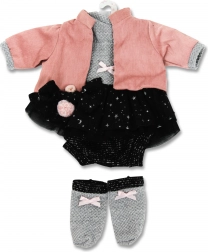 Llorens babaruha 35 cm-es méretben, stílusos és kézzel készített Spanyolországban. Tartalmaz egy 4 részes szettet díszített hajgumival és masnival, ideális 3 éves kortól.
