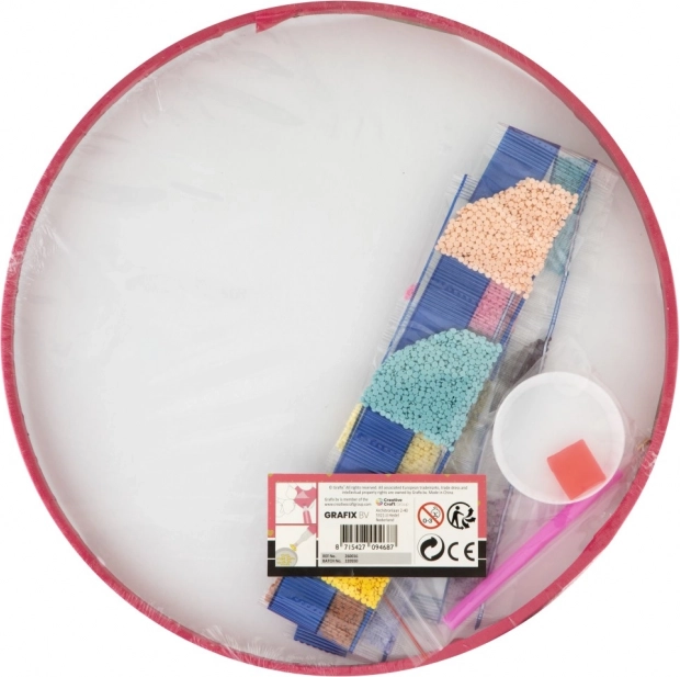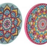 Fedezze fel a pihentető, kreatív hobbit a Grafix gyémántfestő készletével 30 cm-es kerek vásznon. A színes kövecskéket tollal viszi fel az előre jelölt helyekre, így alkot ragyogó türkiz mandalát fa keretben. A szett mindent tartalmaz – ideális a kikapcsolódáshoz, a türelem fejlesztéséhez és az otthon dekorálásához.