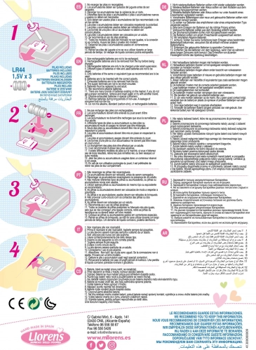 Beszélő és síró baba (a biztosíték eltávolítása után azonnal működő) puha textil testtel és teljes fejét borító hajjal. A fej és a végtagok kiváló minőségű, lágyított vinilből készültek. A cumi szájából való kihúzása után a baba azt mondja: „mama”, „papa”, és valósághű síró baba hangot ad ki, amelyet ismét a mágneses cumival lehet megnyugtatni. A baba mérete 42 cm. Kézzel készült Spanyolországban, díszdobozban csomagolva. Ajánlott életkor: 3 éves kortól. A babához további eredeti ruházat vásárolható a Llorens 42 cm-es babákhoz készült kínálatából. A csomag tartalma: 3 x LR44 gombelem a cseréjükre vonatkozó útmutatóval. Az elemek fogyóeszköznek minősülnek, ezért azok lemerülése nem ad okot a baba reklamációjára.