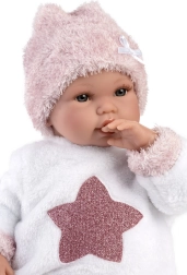 Az ízületesen rögzített karoknak és lábaknak köszönhetően a baba állítható és stabilan tud ülni is. Tartozék egy kiegészítő cumi és elemek az azonnali játékhoz. A babához könnyen vásárolhat eredeti LLORÉNS ruhácskákat 35–36 cm-es méretben.