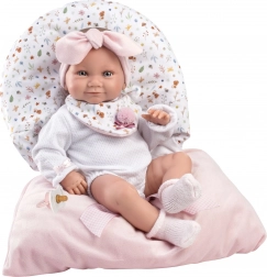 A kezek és lábak ízületekkel rögzítettek, így a baba kiválóan pozícionálható, és stabilan tud ülni. A cumi a csomag része, mint dekoratív kiegészítő. A baba kézzel készült Spanyolországban, és elegáns ajándékdobozban érkezik – tökéletes ajándék.