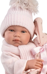 A babát óvatosan lehet fürdetni (kerülje a szempillák benedvesítését). A csomagban cumi mint dekoratív kiegészítő és puha textilruházat található lágy rózsaszín árnyalatokban. A baba kézzel készül Spanyolországban, elegáns díszdobozban érkezik – tökéletes ajándék.