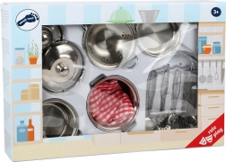 A Small Foot kis fém láboskészlete ideális kiegészítője a gyerekek játék konyhájának. Ez a gazdag készlet tartalmaz különböző elemeket, mint például serpenyőket, lábosokat és egyéb edényeket, amelyek lehetővé teszik a gyerekek számára, hogy szakácsként játszhassanak.