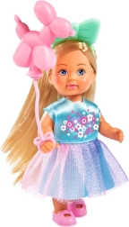 Evi baba gyönyörű pasztellszínű ruhácskában, amelynek báját tüllszoknya, összeillő fejpánt masnival és egy lufi a kezében teszi teljessé.