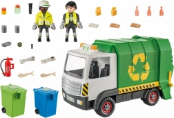 A PLAYMOBIL CITY ACTION újrahasznosító teherautó hiteles élményt nyújt a városi szolgáltatások világából. A gyerekek a konténereket a jármű hátuljára rakhatják, meghúzhatják a kart, és felemelhetik, majd kiüríthetik az egyes konténereket. A jármű kiürítéséhez a teljes tartály felfelé billenthető, a hátsó rész pedig felnyitható. A levehető tető könnyű hozzáférést biztosít a vezetőfülkéhez.
