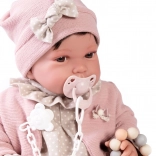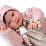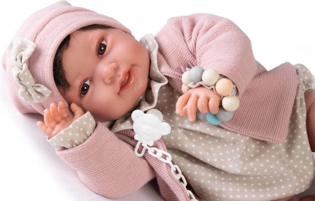 A puha textil test és a fejen, illetve a végtagokon használt lágyított vinil kombinációja természetes hatást kelt, és kellemes ölelgetéshez, mindennapos játékhoz.