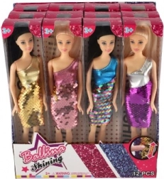 Ez az elegáns baba végtelen fantáziát kínál a gyerekeknek. Csillogó, kétoldalas flitteres ruhát visel, amely kézzel végigsimítva színt vált – a gyerekek imádják ezt a hatást. A masszív műanyag testnek és a minőségi kivitelezésnek köszönhetően tökéletes a mindennapos játékhoz és ajándéknak is.