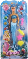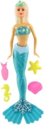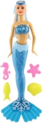 A dobozban tematikus tengeri kiegészítőket is találsz (pl. tengeri csillag, csikóhal, kagylók), amelyek támogatják a kreativitást és az önálló játékot. A baba 3 színváltozatban érhető el (kék, türkiz, rózsaszín).