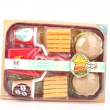 Szórakoztató játék szett kis szakácsoknak, amely hamburgerből, műanyag hasábburgonyából, tálcából és kiegészítőkből áll a gyorsételek elkészítéséhez. Támogatja a kreativitást, a szociális készségek fejlődését és a szerepjátékot a kedvenc ételek tálalásakor.