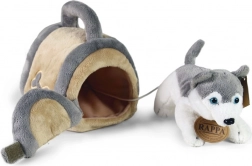 A puha, füllel és zárással ellátott hordozható táska otthonos házikóként szolgál a husky számára, és megkönnyíti a szállítást bárhová.