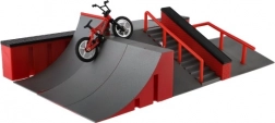 • Teljes szett: rámpa, lépcső korláttal (rail), ujjgördeszka és mini BMX kerékpár