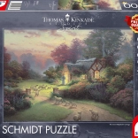 A Schmidt Spiele neves gyártó „Pásztorkunyhó” című puzzle-je egy idilli vidéki környezetben álló hangulatos kunyhót ábrázol. A motívum alkotója a híres művész, Thomas Kinkade, akinek művei a részletgazdag kidolgozásról és a meghitt atmoszféráról ismertek.