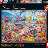 Fedezze fel az összerakás örömét a SCHMIDT „Tengerparti mánia” kirakóval. A minőségi karton, az éles nyomat és az élénk színek kiemelkedő vizuális élményt és hosszú élettartamot garantálnak. Ideális a nyár, a tenger és a vidám motívumok kedvelőinek.