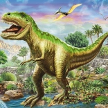 A szett három önálló, dinoszaurusz témájú puzzle-t tartalmaz, amelyek a T–Rex, a triceratops és a fenséges sauropoda világába kalauzolnak. Mindegyik puzzle 48 darabból áll, és kirakva körülbelül 26,3 × 17,8 cm méretű. A strapabíró kartonnak és a precíz kivágásoknak köszönhetően a darabok könnyen illeszkednek és jól tartanak.