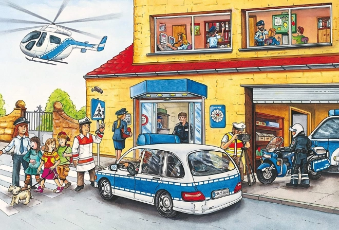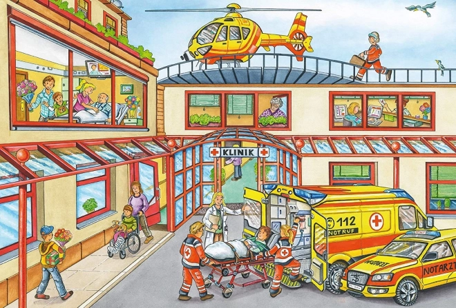 Ideális választás a mentőszolgálatok kis rajongóinak. A készlet három önálló puzzle-t tartalmaz, melyek mindegyike 24 darabból áll. A gyerekek különböző jeleneteket rakhatnak ki tűzoltókkal és rendőrökkel, ami hozzájárul motorikus készségeik és logikai gondolkodásuk fejlesztéséhez.