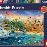 Élvezze a hosszú órákon át tartó szórakozást az „Állatok királysága” kirakóval. Ez a puzzle 1000 darabból áll, amelyek egy lenyűgöző, sokszínű és változatos állatokkal teli képet alkotnak.