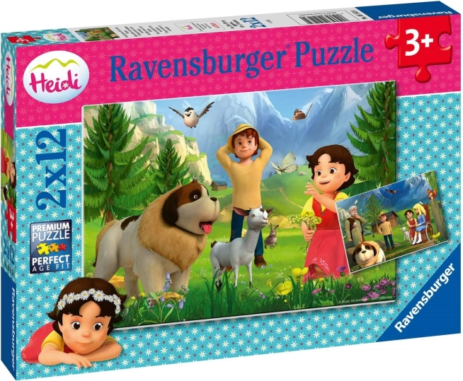 RAVENSBURGER Puzzle Heidi: Közös idő a hegyekben 2x12 darab