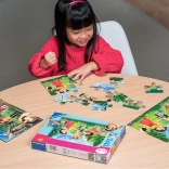Egy dobozban két gyerekpuzzle található – mindegyik 12 darabbal és azonos mérettel.
