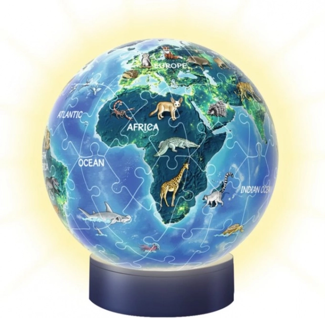 A 3D puzzleball Éjszakai földgömb a Ravensburger márkától innovatív összerakható játék, amely minden nap megragadja a figyelmet. A 72 műanyag darab mindegyike tökéletesen tervezett, hogy stabil gömböt alkosson ragasztó nélkül.