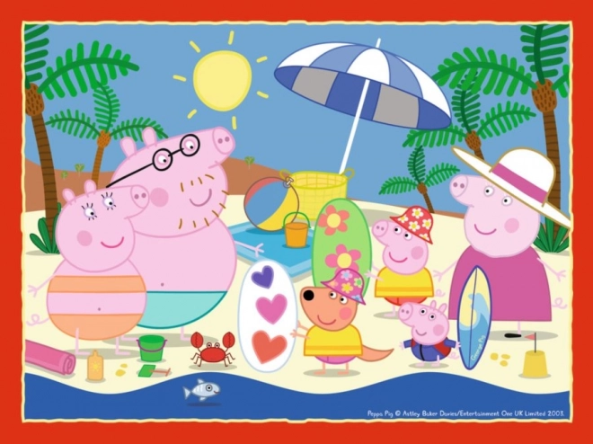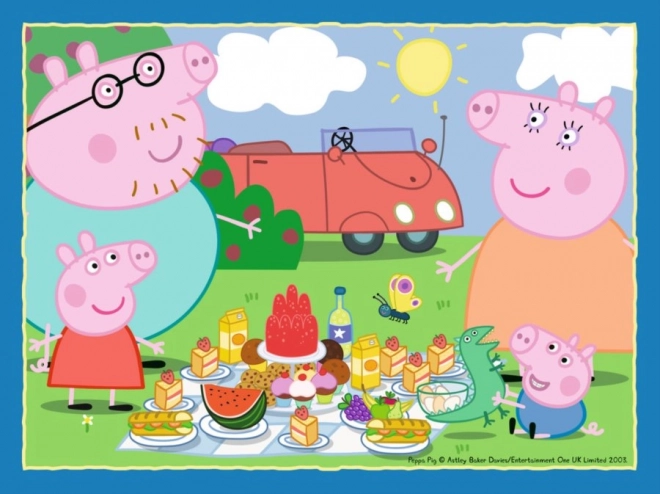 Bemutatjuk a Ravensburger puzzle készletet a kedvelt Peppa malac témával. Ez az egyedülálló kollekció négy különböző puzzle-t tartalmaz, amelyek eltérő számú darabból állnak: 12, 16, 20 és 24. Minden témában vidám pillanatokat rögzítünk Pepével és családjával, amelyek támogatják a kreativitást és a motorikus készségek fejlődését.