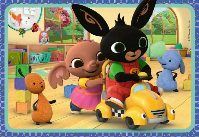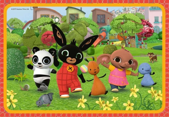 A Puzzle Bing kettős szórakozást kínál egy dobozban. Kisgyermekek számára készült, akik szeretnek kirakózni és felfedezni. Ez a csomag két puzzle-t tartalmaz a népszerű Bing karakter motívumaival. Az elkészült puzzle mérete körülbelül 26 x 18 cm, ami ideális méret a gyerekek számára.